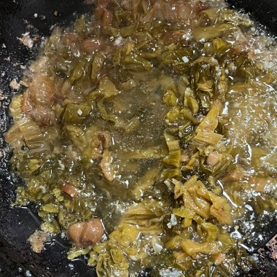 步骤4、锅里炒酸菜炒香加蒜炒
