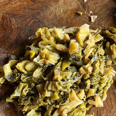 步骤2、酸菜切丝